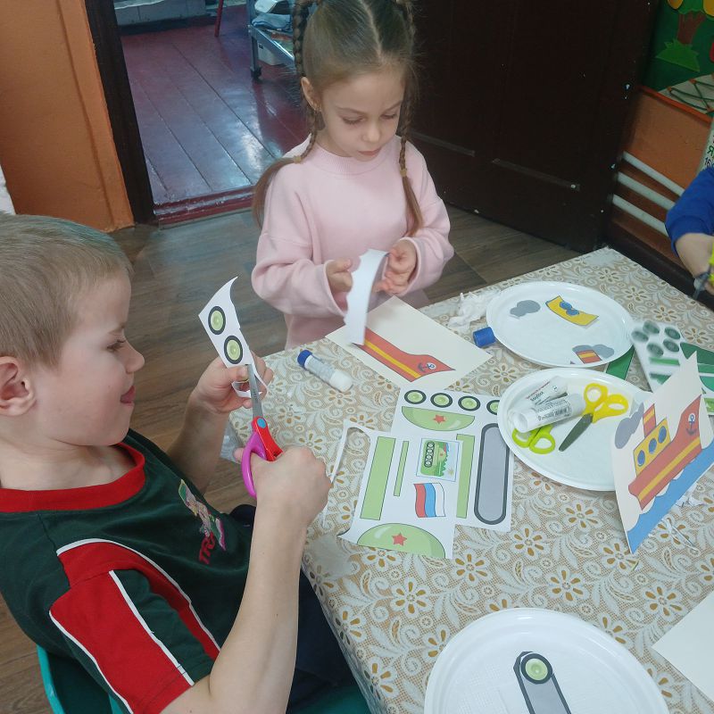 Мы с ребятами побеседовали о нашей армии, её защитниках, военной технике, оружии, военных профессиях, о том, что надо делать, чтобы вырасти достойными защитниками нашей Родины. Ребята активно включились в работу, старались аккуратно вырезать детали и приклеивать их на основу аппликации. Мальчишки рассказывали, как их танки будут защищать Родину.