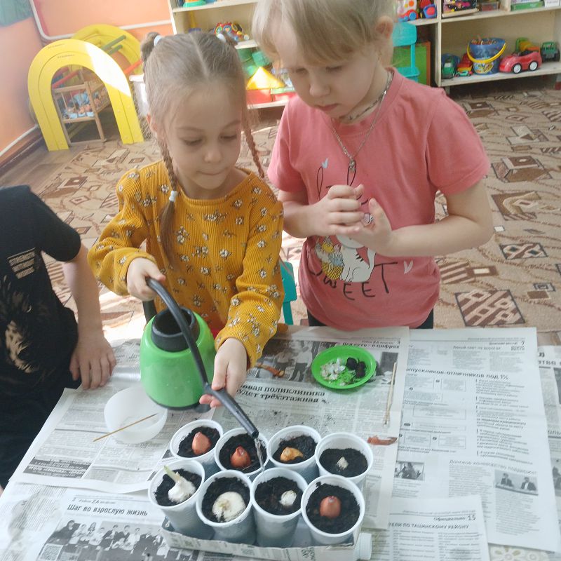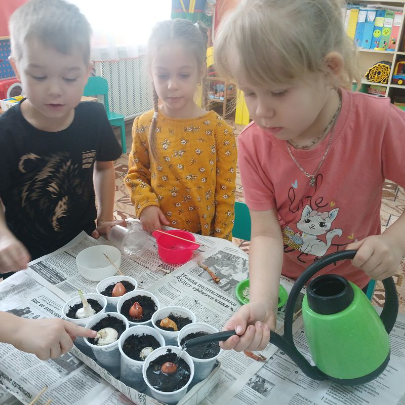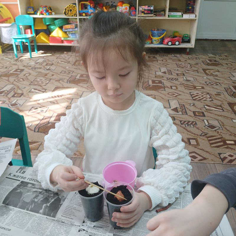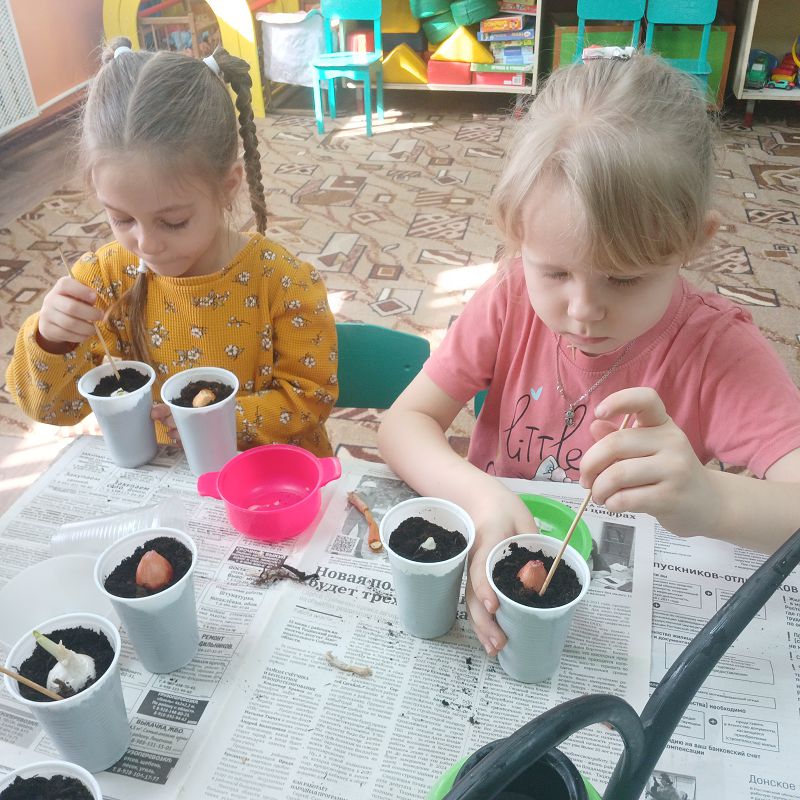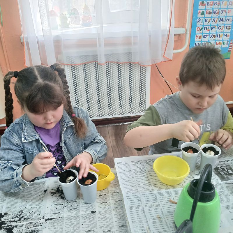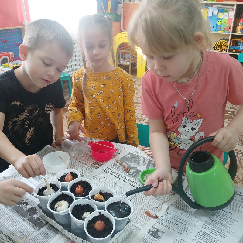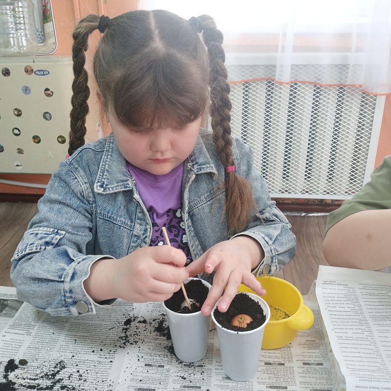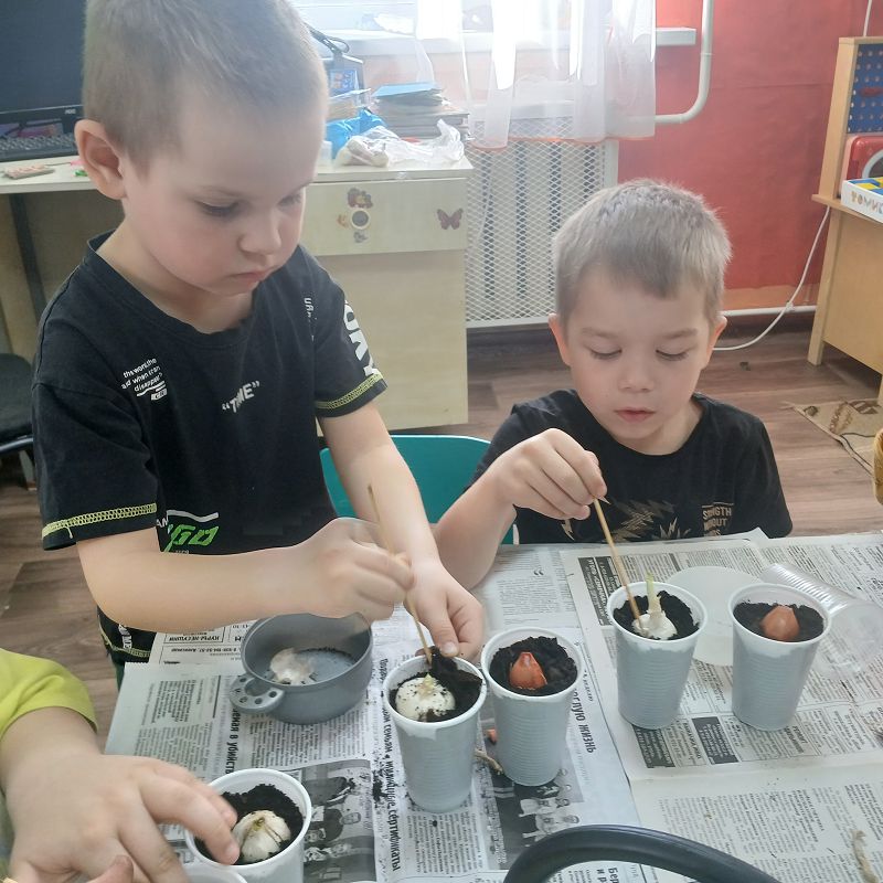 Дети активно участвовали в посадке огорода. Мы посадили лук и разнообразные цветы. Дети с нетерпением ждут и наблюдают, когда появится первый росток. Совместными усилиями мы создаем красивый и вкусный урожай на окне.