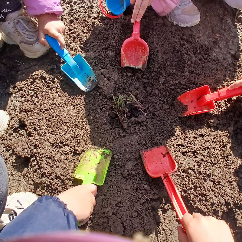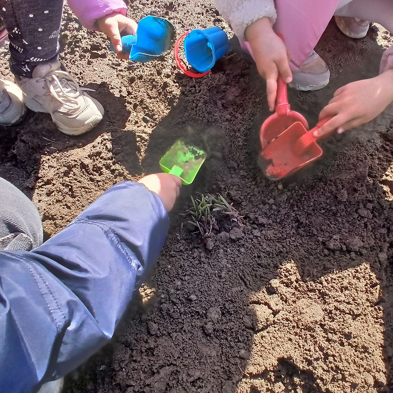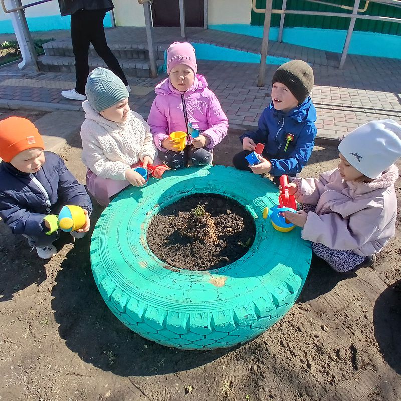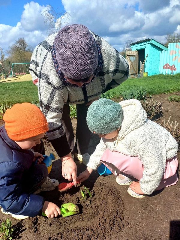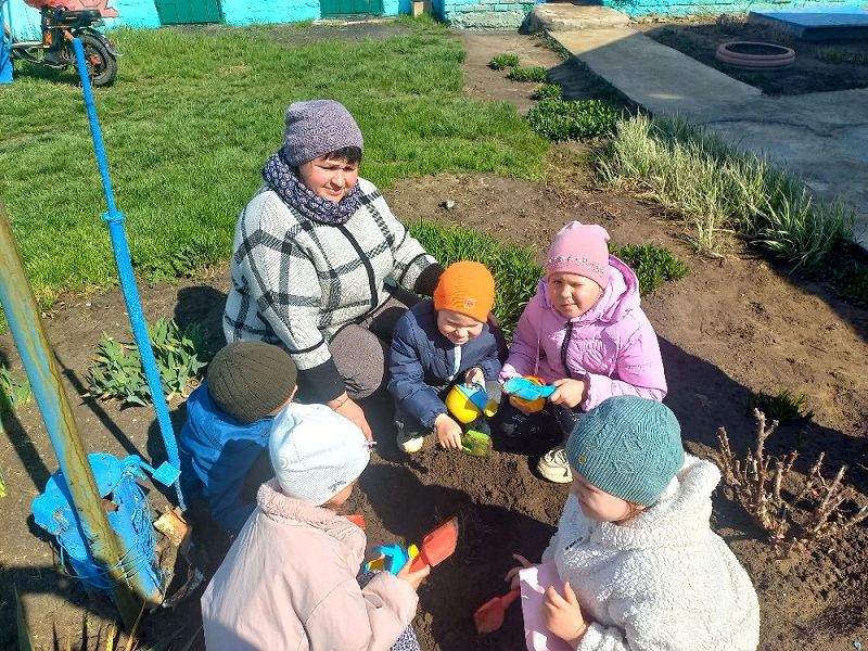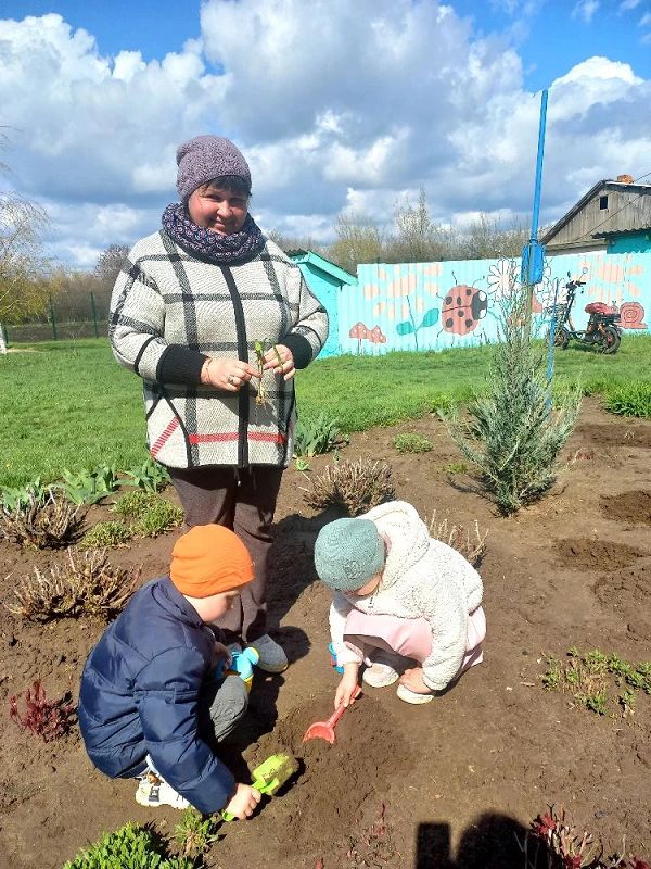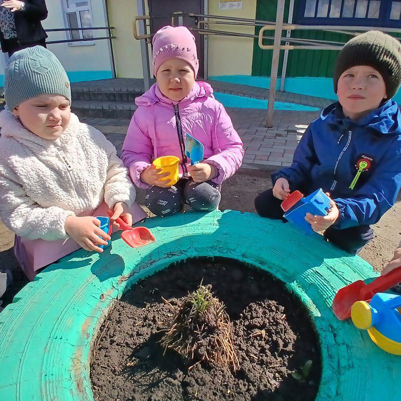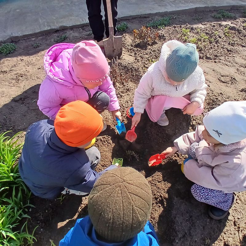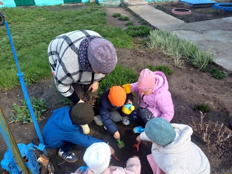Ребята с помощью воспитателя своими руками провели всю подготовительную работу: взрыхлили землю, убрали траву и мусор, сделали небольшие углубления и только потом высадили растения. Каждый старался сделать это аккуратно и бережно.