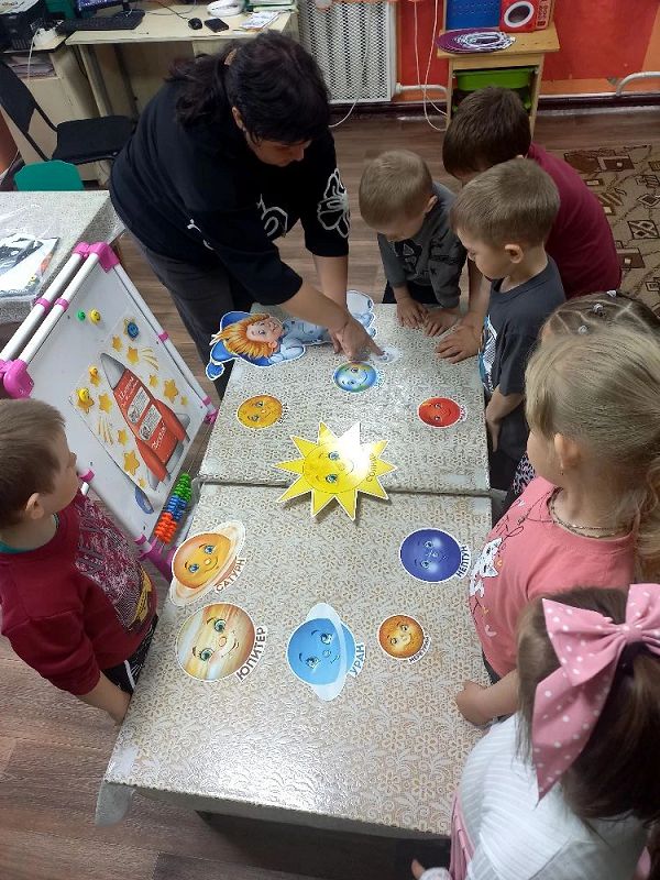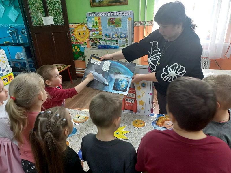 В процессе экспериментальной деятельности дети узнали о форме планет, их размерах, о движении вокруг своей оси; познакомились с космонавтами, уточнили значение слов: «скафандр», «спутник», «созвездие», «метеорит», «орбита», «телескоп», рассматривали фотографии первых спутников, космических станций и героев космоса, о Белке и Стрелке – первых космических собаках — путешественниках, о первом космонавте — Юрии Гагарине и о первой женщине-космонавте — Валентине Терешковой.