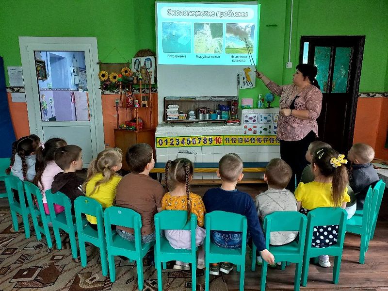 Воспитатель провела с детьми беседы «Земля - наш общий дом», «Здоровье планеты в наших руках», создала проблемные ситуации «Что произойдет с планетой, если не будет солнца», «Что произойдет с окружающей средой, если мусор выбрасывать в море?», играли в экологические игры.