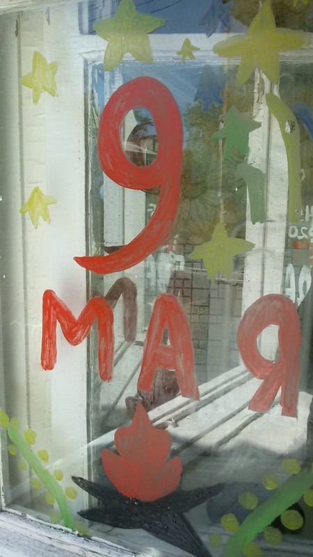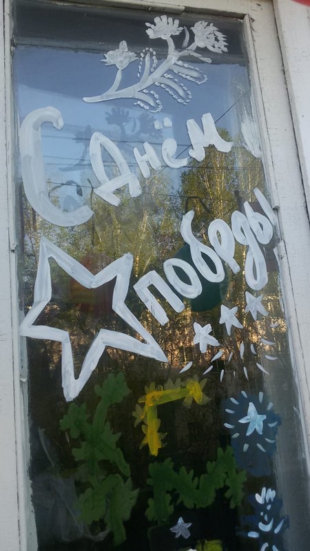 Родители нашего сада вместе с детьми украшают окна своего дома разными способами: рисуют краской, вырезают из бумаги, крепят фотографии ветеранов.