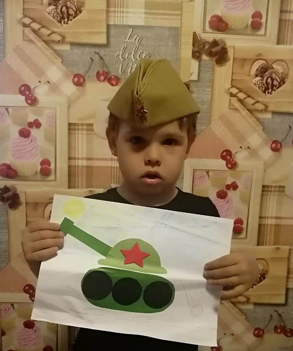 С целью воспитания у детей патриотических чувств, интереса к её героическому прошлому, уважения к павшим защитникам Родины, дети вместе с родителями нарисовали рисунки, сделали поделки к празднику «День Победы»