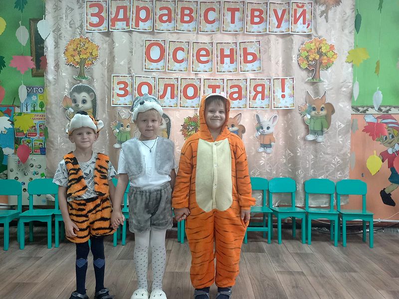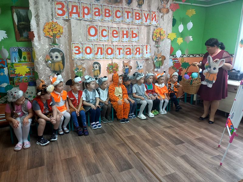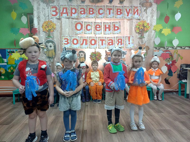 В нашем детском саду прошел осенний праздник «Здравствуй, осень золотая!». У нас в группе царила теплая, доброжелательная атмосфера. К ребятам в гости приходили лесные звери. На утреннике дети рассказывали стихи, танцевали с листочками, пели песни и отгадывали загадки.