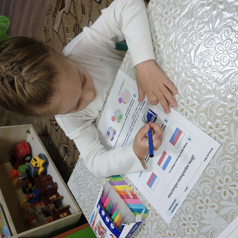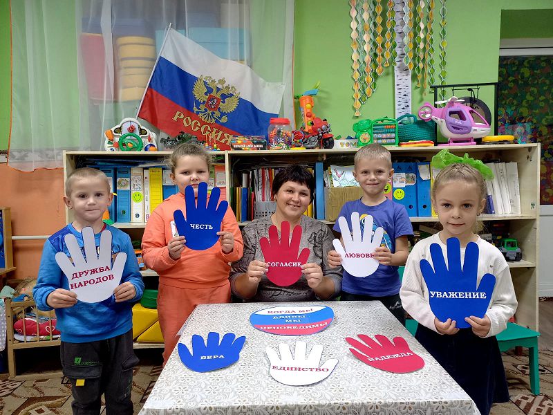 Воспитатель рассказала детям об истории праздника, о том, почему важно жить в мире и согласии, беречь дружбу и уважать традиции разных народов России. Обсуждали, что добро всегда побеждает зло, а дружба — это настоящая сила. Вместе размышляли, что значит быть другом, как помогать друг другу и решать конфликты мирным путём. Ребята узнали, как велика и красива наша страна, сколько в ней удивительных мест и добрых людей.Мы вместе рассматривали красочные иллюстрации городов, природы и народных промыслов — это помогло ребятам ощутить богатство и разнообразие нашей страны.