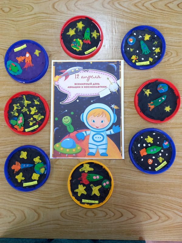 В нашем детском саду 12 апреля проходил день посвященный Дню космонавтики. Дети знакомились с информацией о первом полете человека в космос и о космосе вообще, посмотрели интересную презентацию: «Юрий Гагарин – великий человек», «Красота вселенной». Играли в «космические игры». Знания полученные в детском саду дети закрепили в своих творческих работах. В группе была оформлена выставка детских работ, посвященная Дню космонавтики. Поделки выполнены с большой фантазией и представляли из себя яркий мир красок, звёзд, ночного неба нашей галактики.