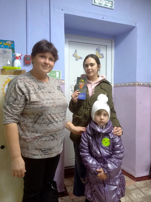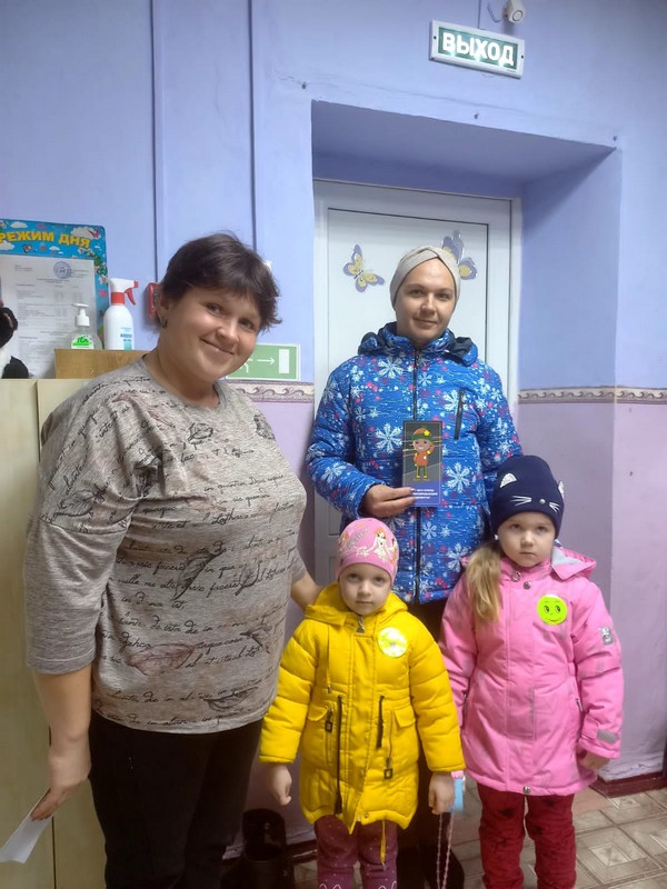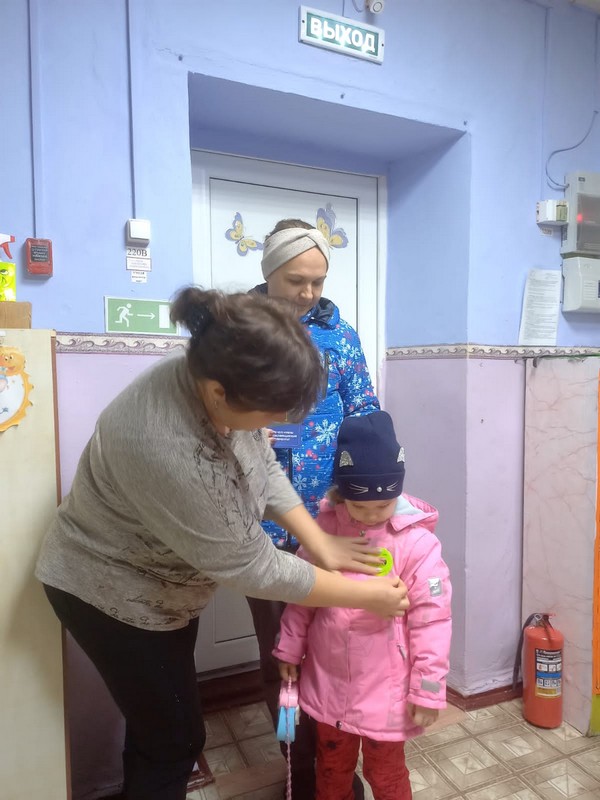 Были вручены буклеты для родителей «Фликеры детям купите родители, пусть на дороге их видят водители!» Детям прикрепили светоотражающие значки-фликеры.