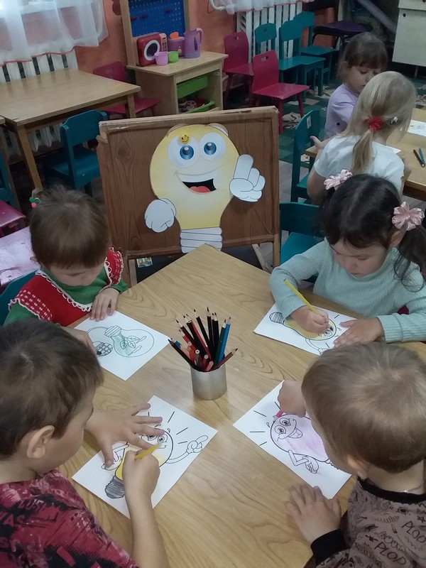 Воспитатель рассказала детям самые простые методы экономии электроэнергии, тепла, воды. Для этого были проведены беседа по энергосбережению. Рисовали агитационные рисунки. Дети напоминали о выключении без пользы горевшего света в помещениях и закрывали капающую из крана воду.
