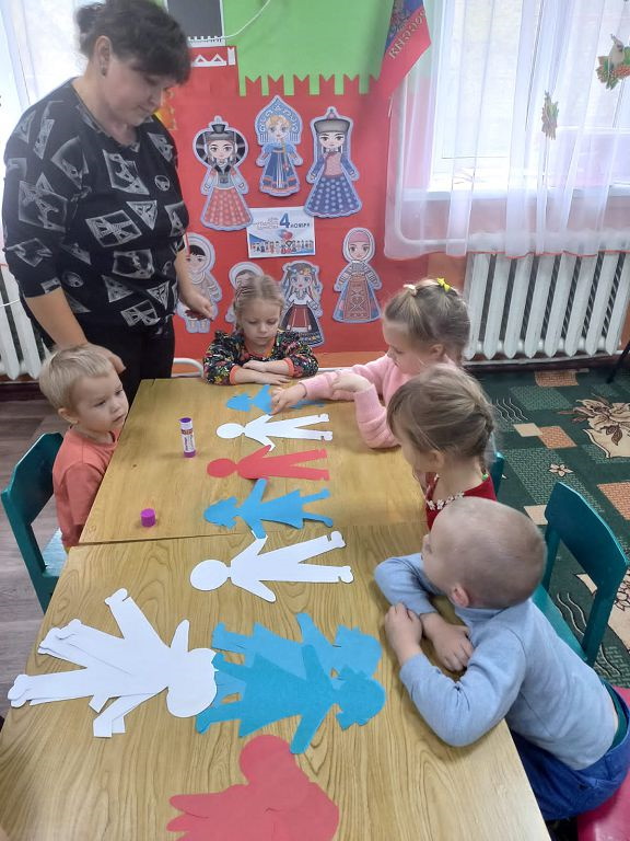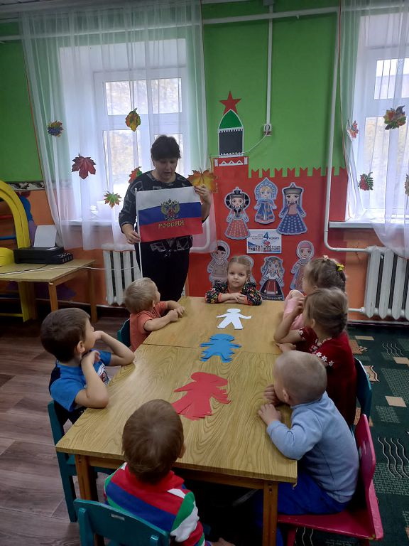 С целью формирования у детей представлений об истории России ее героическом прошлом, а также с целью расширения представлений детей о народах населяющих Россию, в нашем детском саду был проведены цикл познавательных занятий, бесед, просмотров развивающих мультфильмов, презентаций, чтения художественной литературы и т.д.