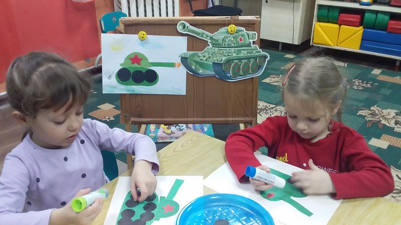 Воспитатель познакомила детей с историей Танкового рейда, показала презентацию о военной технике и родах войск. Дети рассмотрели картинки военной техники и приняли решение, сделать аппликации на листе бумаги «Героические танки». Такие мероприятия, проведённые с детьми, закладывают в их душах зёрнышки патриотизма, чувства долга перед Родиной. Мы гордимся нашей страной, нашей армией, нашими защитниками. Наши мальчики стремятся быть сильными, мужественными, чтобы стать настоящими защитниками для всех нас.