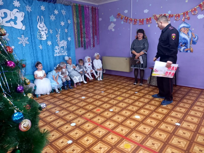 29 декабря, в рамках профилактического мероприятия «Безопасные зимние дороги» инспектор по пропаганде БДД лейтенант полиции М.П. Гречкин провел с воспитанниками детского сада беседу с целью привлечения внимания детей к соблюдению ПДД в зимний период.