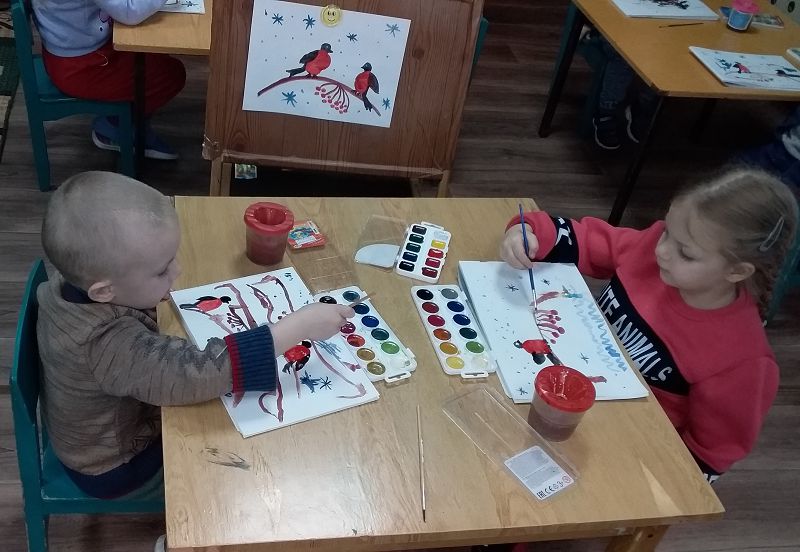 Дети рисовали рисунки, делали тематическую аппликацию, готовили вкусные сюрпризы для птиц. Наблюдали за поведением птиц на участке, оказывали помощь зимующим птицам.