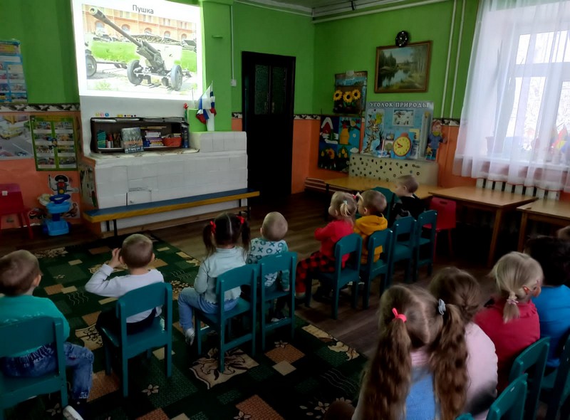 Дети познакомились с родами войск и военной техникой в российской армии. Для актуализации знаний о защитниках Отечества воспитатель Тупеко Т.И. продемонстрировала воспитанникам презентацию «Наша армия».