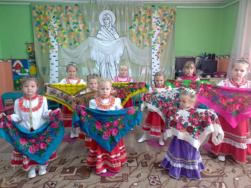 Этот праздник один из самых почитаемых праздников, которые отмечаются во многих семьях осенью. В ходе реализации проекта дети познакомились с историей праздника, посмотрели презентацию о Покрове, играли в народные игры, танцевали, запоминали пословицы и поговорки, говорили скороговорки. Суть празднования Покрова Пресвятой Богородицы непроста для детского восприятия, но мы постарались в доступной форме донести его до наших воспитанников.