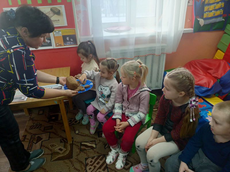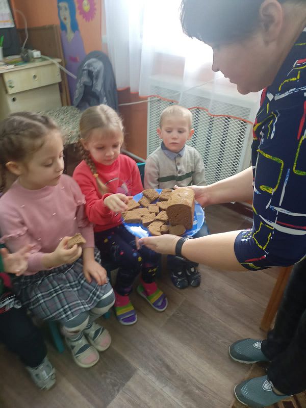 В заключительной части детям раздали кусочки хлеба, как символ мужества и стойкости ленинградцев в жестокие дни блокады. С каким серьезным отношением каждый из детей ел этот маленький кусочек хлеба, очень бережно, не уронив ни одной крошки на пол.