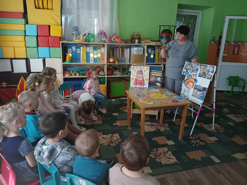 Дети с большим интересом слушали рассказы о первом человеке, отправившемся покорять космическое пространство — Юрии Гагарине, о собаках Белке и Стрелке, которым удалось до человека побывать в космосе, узнали много интересного об учёных, стоявших у истоков развития космонавтики, о планетах Солнечной системы, о космических полётах. С большим удовольствием рисовали своего космонавта.