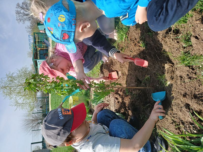 В нашем детском саду прошла ежегодная экологическая акция "День древонасаждения" под девизом: «Только вместе, только дружно, помогать природе нужно!». В акции принимали участие, воспитанники с воспитателем, которые помогли высадить саженцы деревьев, кустарников и цветов на территории детского сада.
