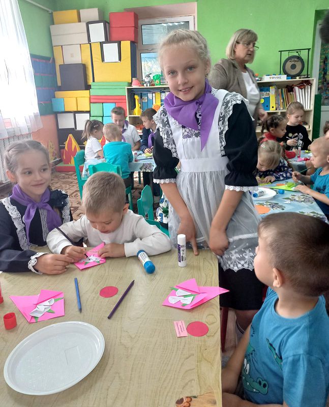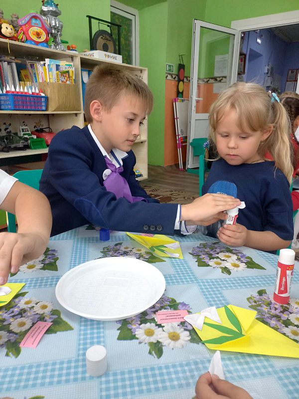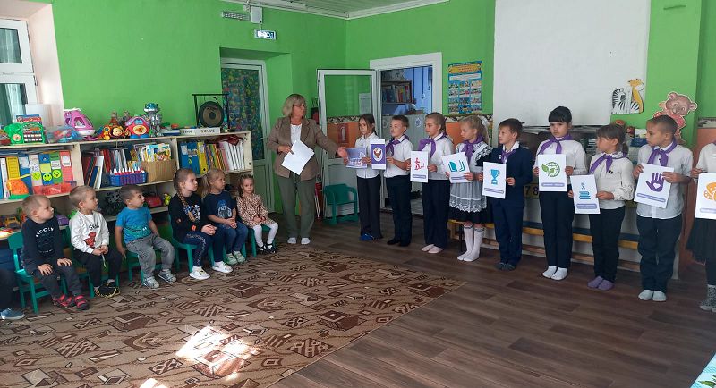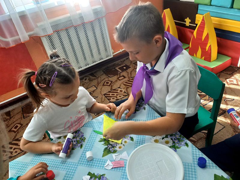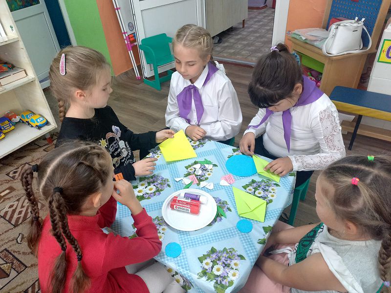 Ребята рассказали, что "Орлята России" учатся дружбе, взаимовыручке, делают добрые дела, с пользой проводят свободное время, о мероприятиях, в которых принимают участие. Школьники провели с дошкольниками мастер-класс по изготовлению сувениров к дню дошкольного работника. Совместная работа направлена на сплочение коллектива и очень понравилась всем участникам.